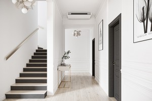 The compact design offers flexible installation: wall-mounted, wall-recessed, floor-standing, ceiling-mounted or even ceiling-integrated. This makes it a stylish solution where wall space may be limited, and where visual appeal and efficiency go hand in hand.